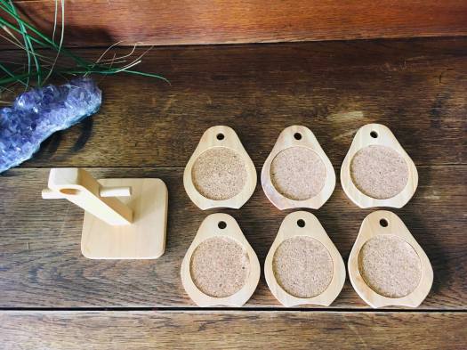 “Peer” – set van 6 peervormige onderzetters voor glazen + houder – basisprijs โฌ 10